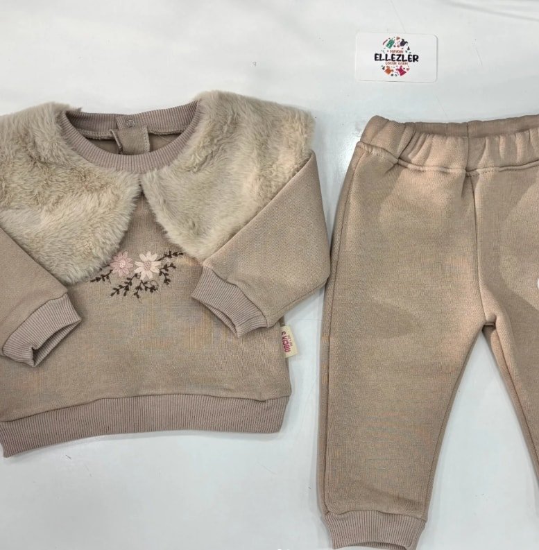 Kış şıklığında lüks ve konfor bir arada! Üst kısmındaki yumuşacık peluş kürklü yakası ve göğüs bölümündeki zarif çiçek nakışlarıyla bu takım, Ellezler Çocuk Giyim’in en iddialı tasarımlarından biri. Hem sıcak tutan yapısı hem de göz alıcı detaylarıyla minik prenseslerin gardırobuna zenginlik katacak.
