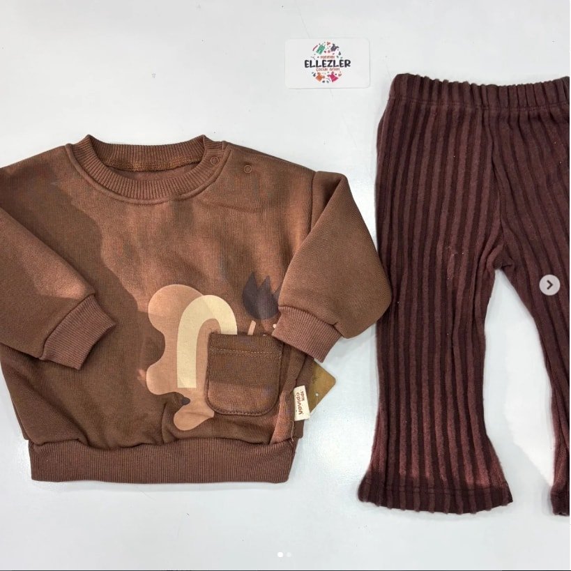 Oyun saatleri şimdi çok daha eğlenceli! modern soyut desenli seçenekleriyle Ellezler Çocuk Giyim sweat takımları, çocukların hayal dünyasına hitap ediyor. Fitilli pantolon detayları ve sweatshirt üzerindeki fonksiyonel cep tasarımları, hem kullanım kolaylığı hem de şıklık sunuyor.