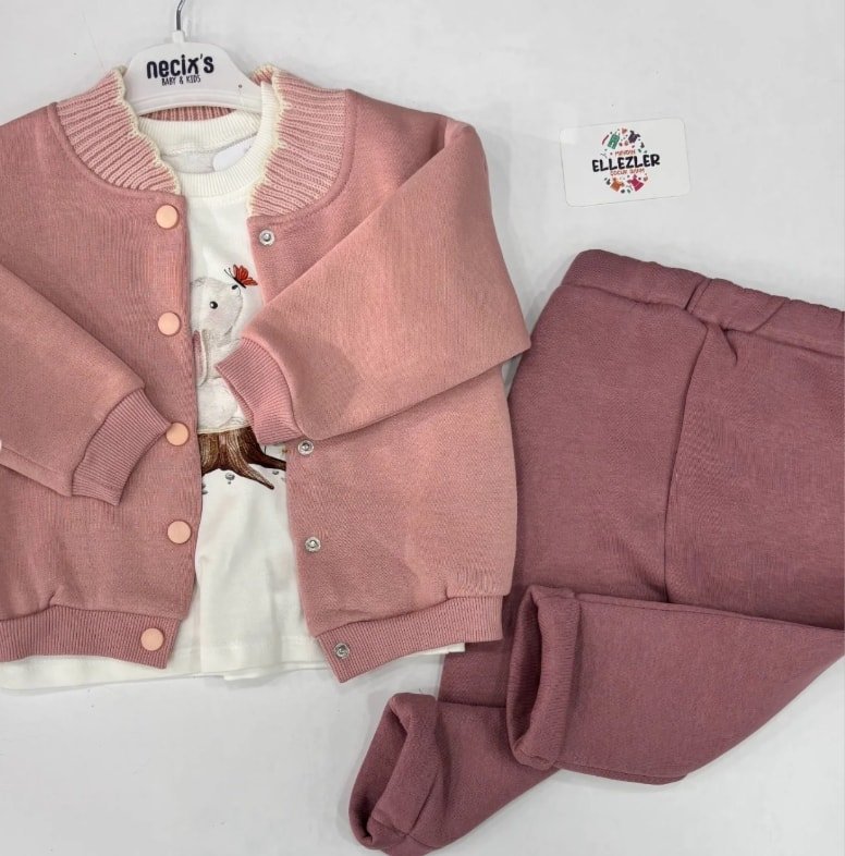“Ellezler Tavşan Figürlü Kolej Yaka Ceketli Kız Çocuk Üçlü Kombin Takım Açık Pembe” için yorum yapan ilk kişi siz olun